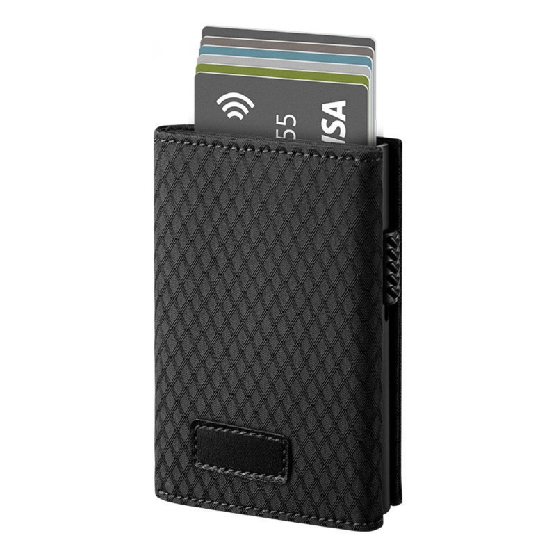 Contamos con una variedad de billeteras elegantes en materiales como cuero, aluminio, fibra de carbono, terciopelo, y más. Todas están diseñadas para un almacenamiento delgado y cuentan con tecnología pop-up para un acceso rápido a tus tarjetas. Además, nuestras billeteras protegen tu información con el sistema anti-clonación (RFID). La mayoría pueden guardar entre 1 y 12 tarjetas, dependiendo del modelo.